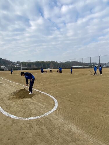 12/29(金)、1年の最後の活動は毎年恒例の大掃除です。 グラウンドの凸凹や水の通り道で削れた部分を少しでもフラットになるよう、みんなでグラウンド整備をしました。 盛り上がってる場所はトンボを使って削り、土をかき出しました。 備品を入れている倉庫も…