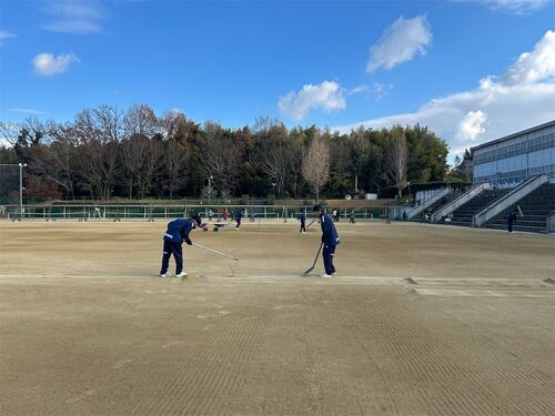 12/29(日)、年末大掃除を行いました。 まずはグラウンド整備から グラウンドのところどころにできたコブを削ったり埋めたりの作業を進めました。 ある程度削れたら、野球部からお借りしたトラックでグラウンド整備です。茶田先生がトラックを運転しました。 …